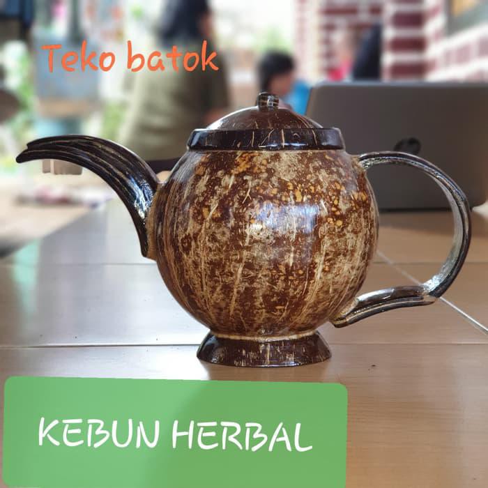 Kalau sebelumnya tadi gelas, sekarang teko dari batok kelapa.